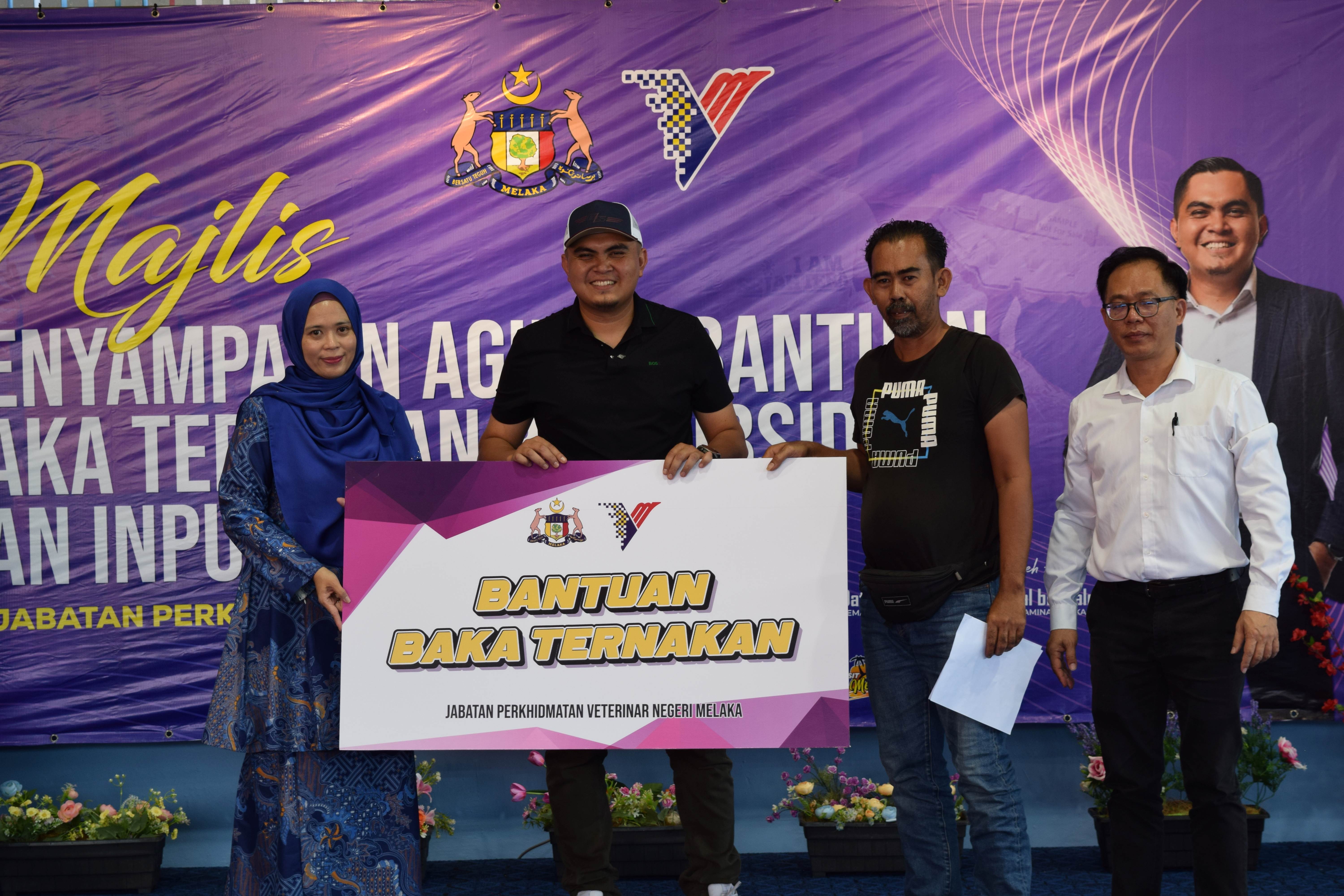 Seramai 54 penternak dari setiap daerah di negeri Melaka telah menerima bantuan baka lembu, mesin perincih dan freezer di dalam majlis ini. Majlis penyerahan bantuan ini telah di sempurnakan dan dirasmikan oleh Exco Kemajuan Desa, Pertanian dan Keterjaminan Makanan Negeri Melaka YB Datuk Dr. Muhamad Akmal Bin Saleh diiringi oleh timbalannya YB Tuan Low Chee Leong. Tahniah kepada para penerima bantuan dan moga terus maju jaya.